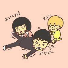 うつ伏せに寝たお父さんを みんなでひっくり返す遊びです 遊び方お父さんはうつ伏せになって寝ます 子ども達は うつ伏せのお父さんを ひっくり返し て仰向けにします お父さんはひっくり返されないように 手足を伸ばして ひたすら耐えます コツとポイ こどもの