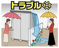 隣家へのトラブルを防止するための前下がりカーポート カーポート 物置 前下がり